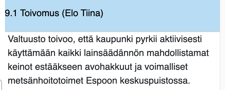 Yksi vastaus artikkeliiin “Valtuustossa: Aloite avohakkuiden ja voimakkaiden metsänhoitotoimien estämiseksi Keskuspuistossa”